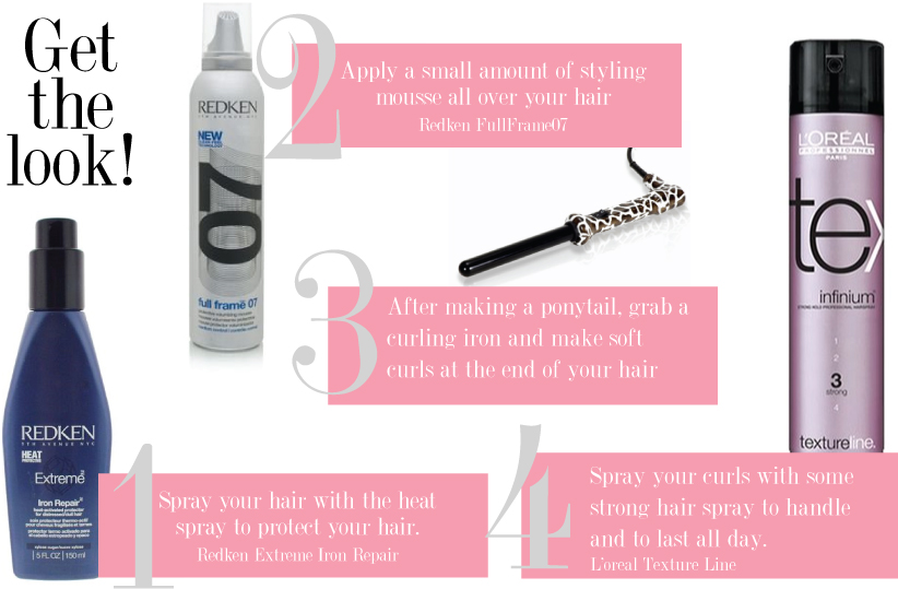 Para hoje fica aqui um post de beleza, as tendências para 2011 de penteados, parece que os rabos-de-cavalo estão de volta e conseguem ser tão chiques e é super fácil de conseguir atingir o look da Lauren ou da Whitney, só precisam de um protector de calor para o cabelo, espuma, um ferro de encaracolar se quiserem um rabo-de-cavalo com uns caracois ou umas ondas e uma laca para fixar, sigam os passos e estão prontas para arrasar. Sentiram-se inspiradas?