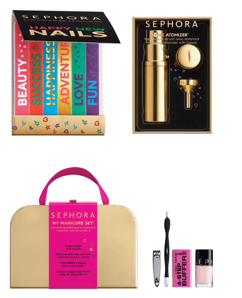 Outra sugestão de presentes são os kits de manicure, kits de pincéis, de cremes de mãos ou kits de essenciais de maquilhagem. No que toca à colecção de banho, nada como um conjunto de gel de banho e sabonete liquido bem giros. Há um pouco de tudo na Sephora, até para nós que vamos comprar presentes para oferecer, vamos gostar de receber um kit destes. O trio de bolsinhas douradas são um mimo, adoro!