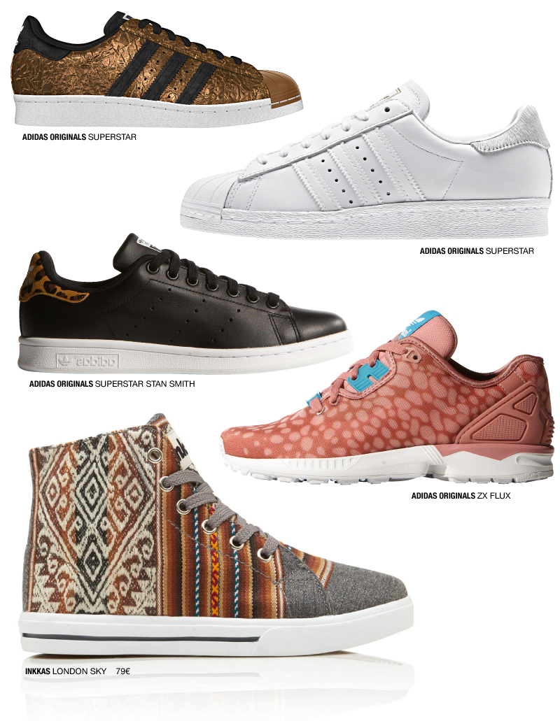 Na semana passada fui conhecer a colecção da Adidas e para a próxima temporada só podemos esperar coisas boas e giras que se fartam, destaco a colecção Farm e os novos Super Star Stan Smith com aplicações de pêlo de animal e print. Alguns dos modelos já estão nas lojas e como sou uma adepta de sneakers, cada vez mais, decidi dedicar um post inteirinho aos modelos que mais gosto de várias marcas, desde a Aldo que esta estação apostou em muitos modelos deste tipo de calçado, à Nike com os seus Roshe Run ou o novo modelo Air Max Thea. Outras marcas ainda que valem a pena espreitar, são a Bimba Y Lola e a New Balance que também tem modelos muito giros e super fáceis de conjugar em looks do dia-a-dia.