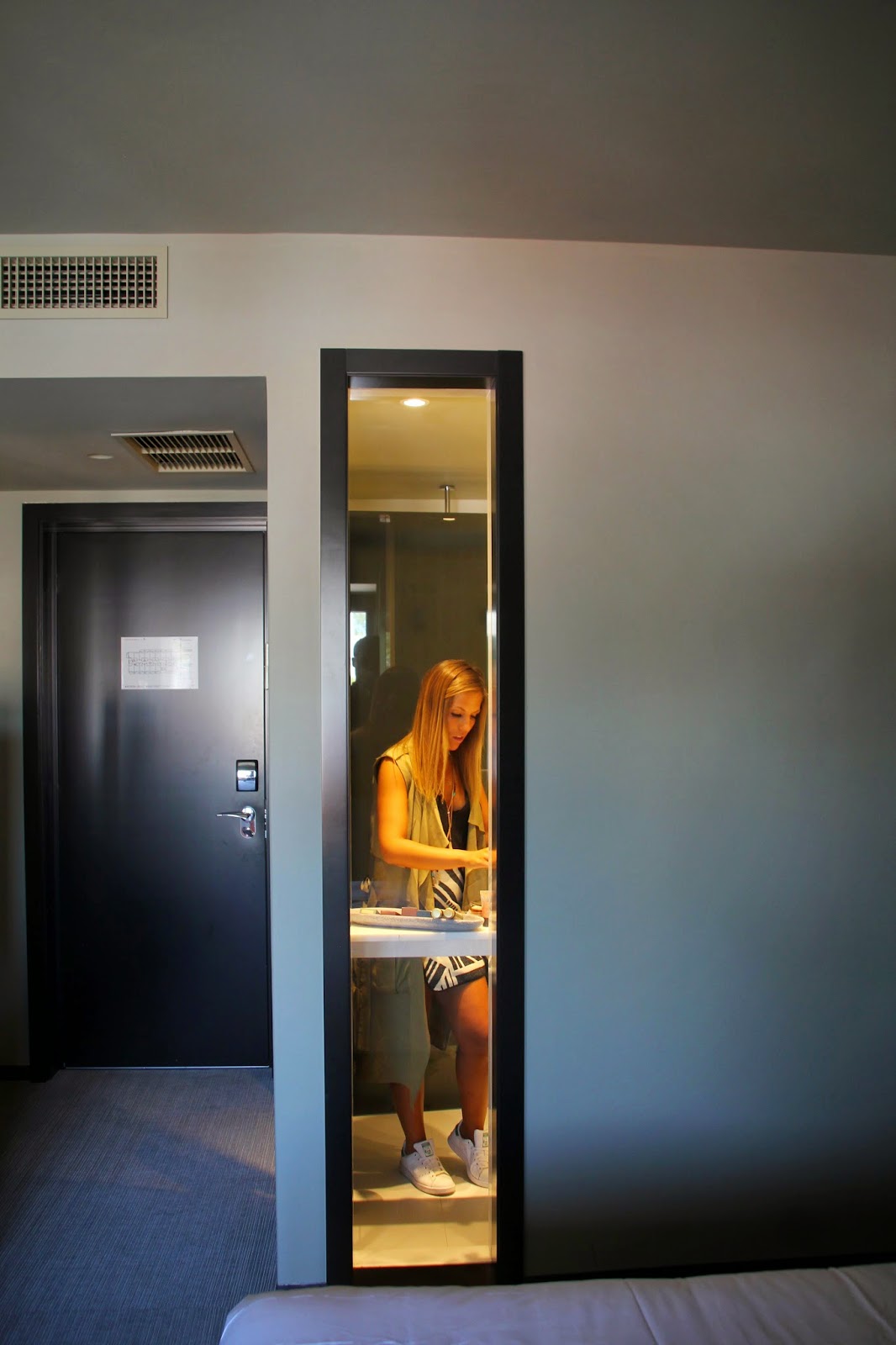 Depois, dirigimo-nos até ao terceiro andar para irmos colocar as malas e preparar-nos para experimentarmos a maravilhosa piscina no topo do hotel - linda de morrer. Os quartos são super bonitos, adorei os detalhes da iluminação por baixo e em volta da cama e o mega prato de fruta de boas vindas que tínhamos à nossa espera quando lá chegámos. A casa-de-banho totalmente equipada, super bonita, clean e com detalhes que me deixaram deliciada, a juntar a isto pudemos ainda usufruir de uma varanda muito agradável, especialmente ao final da tarde.