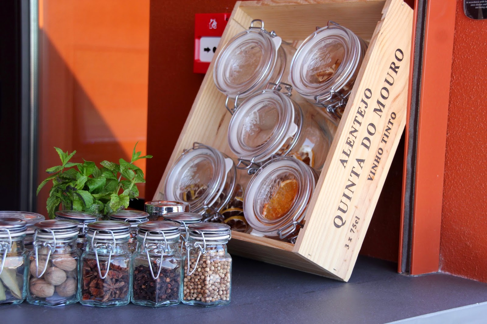 Assim que chegámos deram-nos a provar a caipirinha 5 Amêndoas e o couvert especial do restaurante com umas tostas maravilhosas, azeitonas, azeite Herdade do Esporão com Flor de Sal, queijo e ainda uma manteiga de coentros absolutamente fantásticas. Como entradas, decidi experimentar o tártaro de salmão (MARAVILHOSO, ainda estou a sonhar com ele) e o Manel acabou por pedir Pézinhos de Coentrada. Para prato principal, optei pelo vegetariano, a beringela recheada e o Manel pelo Dueto de Secretos com Migas de Batata. Estava tudo fantástico, a comida era de facto excelente e foi a melhor maneira de acabarmos o dia.