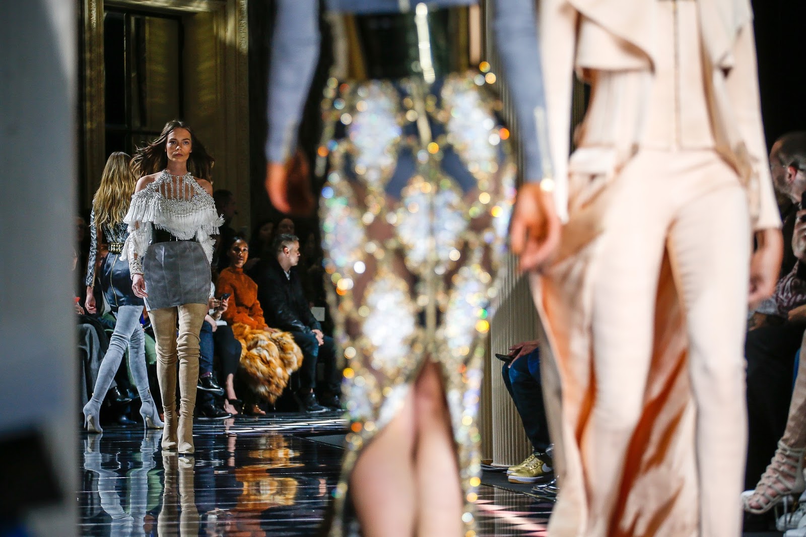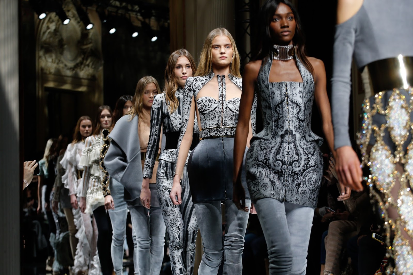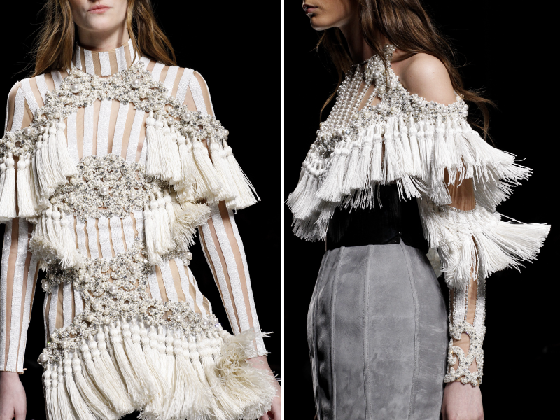 Os materiais nobres, as sobreposições, os detalhes, os metalizados e os trabalhados das peças continuam a ser uma grande aposta de Olivier. Mantendo sempre a mesma linha da marca mas desta vez arrojando com os tons mais claros, apresentados numa colecção de inverno. Dou destaque para uma das combinações de que mais gosto: nude e cinza. Super bonito e que resulta na perfeição, em camurça, veludos ou materiais quentes em cortes femininos e de inspiração mais militar. Sempre cintados e sempre a enaltecer o corpo feminino. Mais uma colecção genial de Balmain que continua a ser uma das minhas love brands. Aliás, as imagens falam por si!