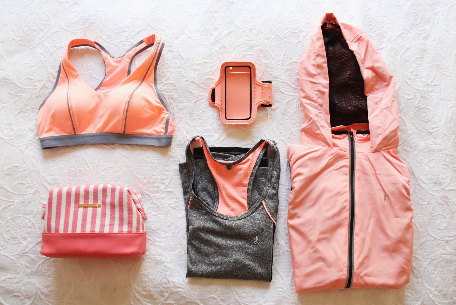 A motivação no ginásio e para ficar fit para o verão continua. Continua a nossa viagem para o corpo perfeito, até porque já afirmei aqui varias vezes que os corpos de verão, fazem-se no inverno. Precisava de algumas peças de gymwear e aproveitei que a nova colecção da Primark está super gira para trazer algumas coisas que queria, tais como a bracelete para o iPhone 5S, uma necessaire para a maquilhagem e as coisas o banho, um soutien de desporto, um colete e um top.